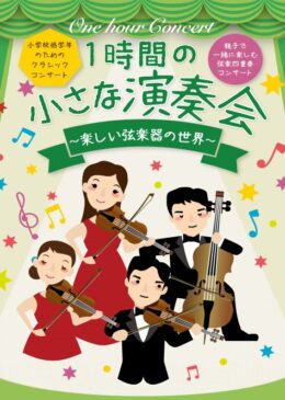 ~楽しい弦楽器の世界~~楽器紹介、曲紹介あり~ 1時間にクラシック・アニメソング・童謡唱歌など楽しめる楽曲をギュッと詰め込みました! 地元親子アンサンブルとのコラボレーションもあります!