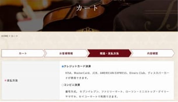 注文内容をご確認のうえ、お支払方法を選択してください。クレジットカード決済、コンビニ決済が選択可能です。